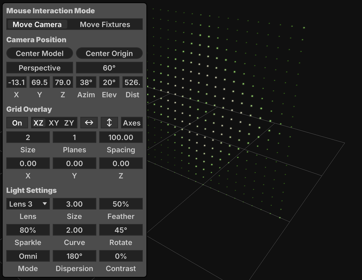 - Move Fixtures: Clicking and dragging with the mouse moves selected fixtures