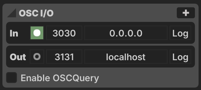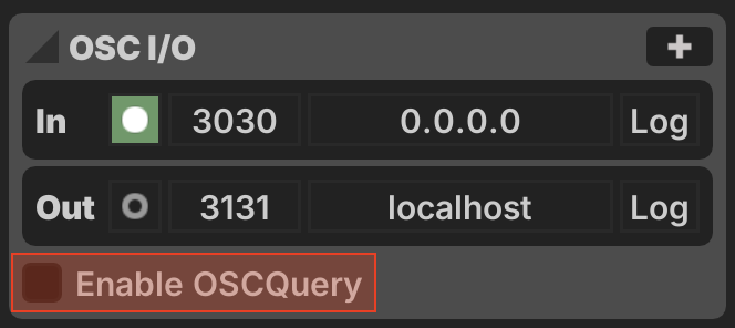 Chromatik supports the OSCQuery protocol for OSC address discovery. This is enabled by clicking the "Enable OSCQuery" box in the main OSC I/O section. Toggling this setting requires a restart of Chromatik, as the OSC Query service is registered at application startup.