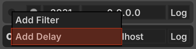 Additional OSC inputs can specify a delay. Right-click the Input / Output to expose the Add Delay option.